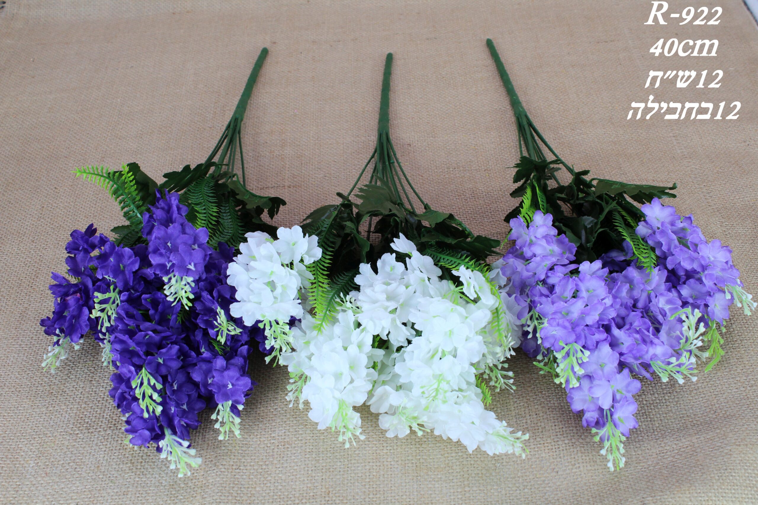 זר פרחים מלאכותיים בצבעים סגול ולבן, בגובה 40 ס"מ. מתאים לעיצוב חלונות, מרפסות ושולחנות.